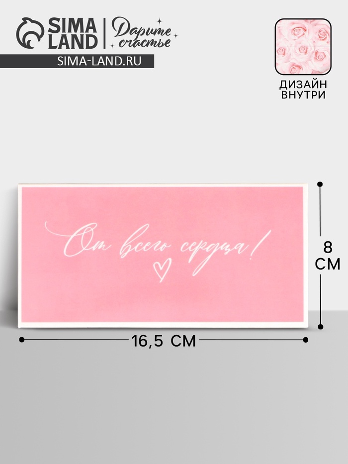 Конверт для денег «От всего сердца!», розовые розы, двусторонний, 16.5×8 см - товар, который Вы можете приобрести в нашем интернет-магазине. Заказ могут оформить как юридические, так и физические лица. Бесплатная доставка по Астане, также, отправляем по РК.