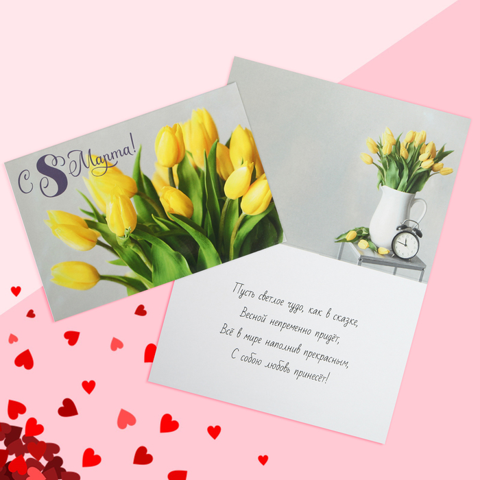Открытка «С 8 Марта!», желтые тюльпаны, 12 х 18 см - товар, который Вы можете приобрести в нашем интернет-магазине. Заказ могут оформить как юридические, так и физические лица. Бесплатная доставка по Астане, также, отправляем по РК.