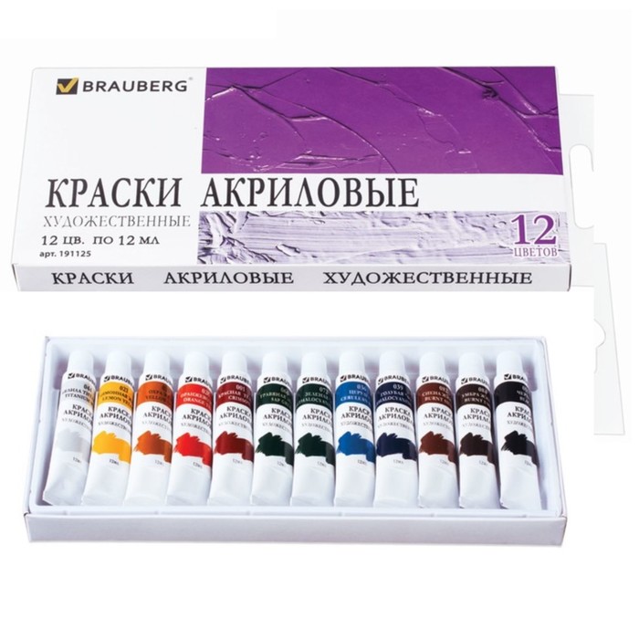 Художественные акриловые краски BRAUBERG ART "DEBUT" предназначены для живописи и декоративных работ.