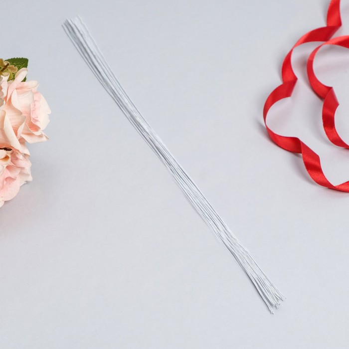 Флористическая проволока Белая 0,55 мм, 30 см, в бумажной оплётке, набор 30шт