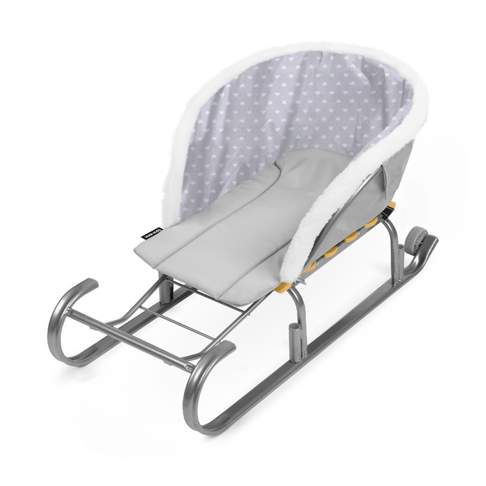 Комфортная зимняя прогулка для ребёнка начинается с удобного места. Серое сиденье для санок с сердечками – практичная мягкая вставка, которая делает катание тёплым и уютным.