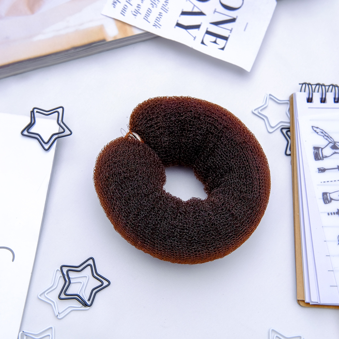 Валик на кнопке для создания пучка, 4,5х17 см, коричневый — незаменимый помощник для создания любого вида пучка, с этим аксессуаром укладка получится аккуратной и будет выглядеть презентабельно. Подберите «бублик» в тон ваших волос, чтобы он был незаметен, благодаря валику пучок получится объёмным.