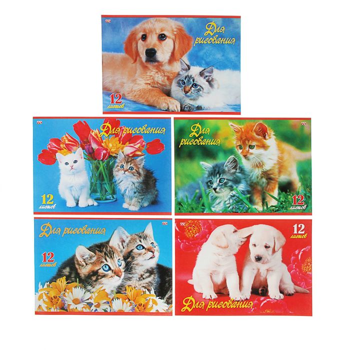 Альбом для рисования А4, 12 листов на скрепке Hatber "Верные друзья", блок 100г/м2, МИКС