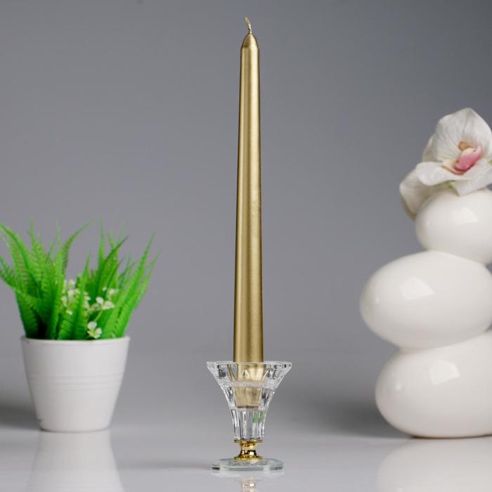 Элегантная деталь интерьера, которая превратит обычный вечер в атмосферу уюта и тепла — коническая свеча в благородном золотистом исполнении. Её лакированная поверхность с эффектом металлик играет бликами при свете пламени, создавая игру света и тени в вашем пространстве.