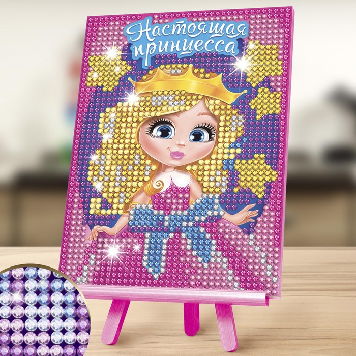 В данном наборе есть небольшой мольберт, с ним готовое творение можно удобно расположить на полке или столе без дополнительных креплений. В таком интересном оформлении сверкающая картина будет выглядеть как предмет искусства.