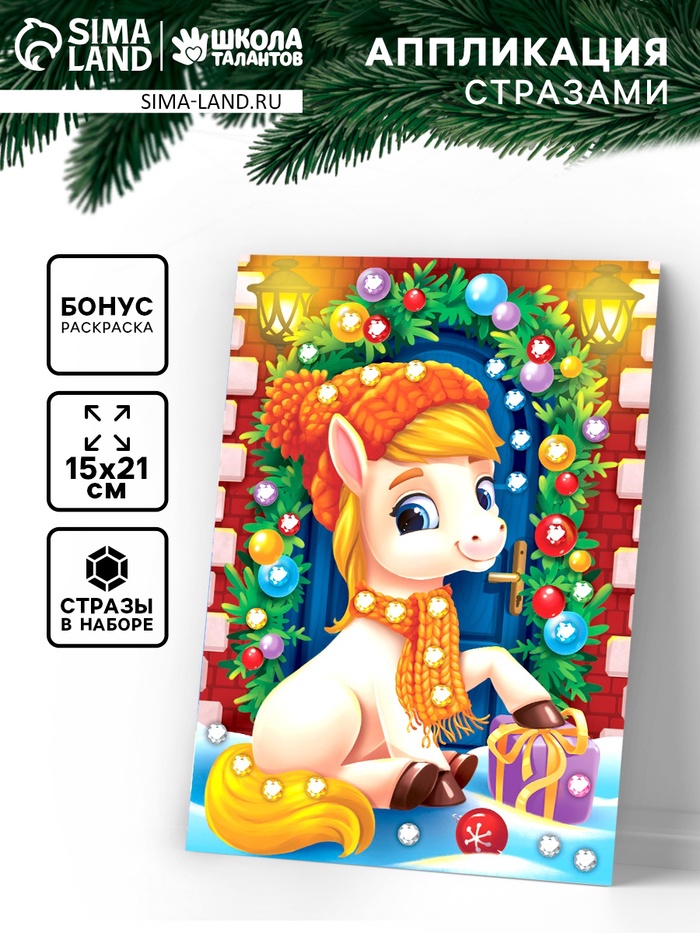 Аппликация стразами новогодняя «Лошадка» 14.8×21 см - товар, который Вы можете приобрести в нашем интернет-магазине. Заказ могут оформить как юридические, так и физические лица. Бесплатная доставка по Астане, также, отправляем по РК.