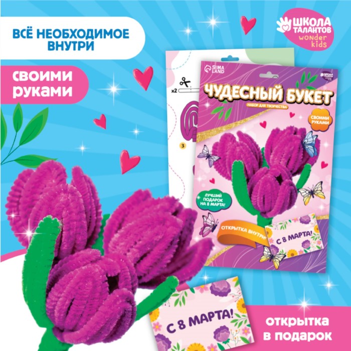 Поделка к празднику — отличный повод провести время с ребёнком и создать замечательную поделку. Детям нравится мастерить из самых невероятных материалов. Оригинальный набор для создания букета из пушистой проволоки по-настоящему увлечёт ребёнка и станет удачным подарком для талантливого малыша!