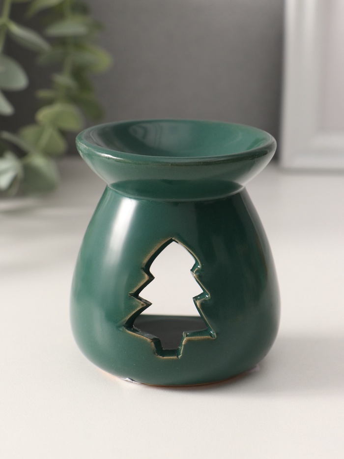 Погрузитесь в атмосферу уюта и гармонии с изящной аромалампой, выполненной с окошком-ёлочкой. Её тёмно-зелёный цвет и компактные размеры (6.8×6.8×7.5 см) делают её идеальным аксессуаром для создания праздничного или расслабляющего настроения. Сделанная из высококачественной керамики, она станет не только функциональным предметом, но и стильным украшением вашего дома.