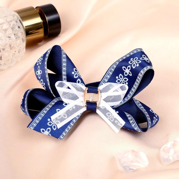 Эта детская резинка для волос с цветочным бантом — незаменимый аксессуар для маленькой модницы. Стильный дизайн в бело-синей гамме добавит яркие акценты к школьной форме и отлично подойдет для торжественных мероприятий. Материалы из текстиля и пластика обеспечивают удобство и долговечность, а диаметр резинки в 5 см делает её подходящей для детских волос.
