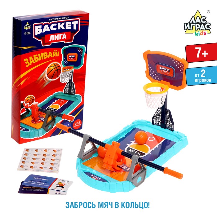 Настольная игра «Баскет-лига» рекомендована для детей от 7 лет. Рассчитана на компанию от 2 игроков.