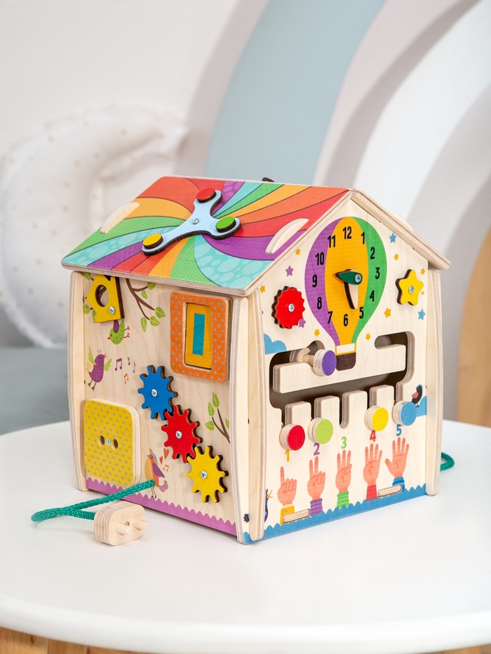 - Интерактивный формат игры: компактный развивающий домик объединяет разные игровые элементы на нескольких сторонах. Такой формат напоминает маленький исследовательский центр, где каждая грань открывает новое действие и удерживает интерес ребенка дольше обычной игрушки.