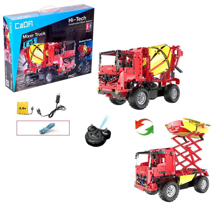 Конструктор радиоуправляемый «Грузовик бетономешалка» с аккумулятором, 2 в 1, 814 деталей