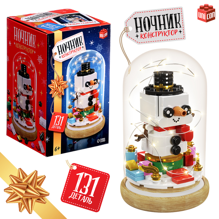 Удивите ребёнка увлекательным и полезным новогодним подарком! Блочный конструктор с гирляндой легко и интересно собирать, а после — украсить получившимся ночником прикроватную тумбочку! Тёплый мягкий свет будет создавать уютную праздничную атмосферу в детской комнате.