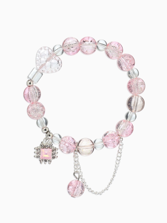 Браслет с подвесками "Сахарный" ромб, сердечко, шар №10, цвет бело-розовый в серебре - товар, который Вы можете приобрести в нашем интернет-магазине. Заказ могут оформить как юридические, так и физические лица. Бесплатная доставка по Астане, также, отправляем по РК.