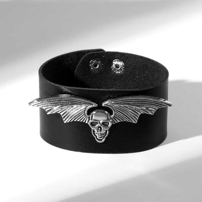 Браслет унисекс «Хардкор» череп, цвет чёрный в чернёном серебре
