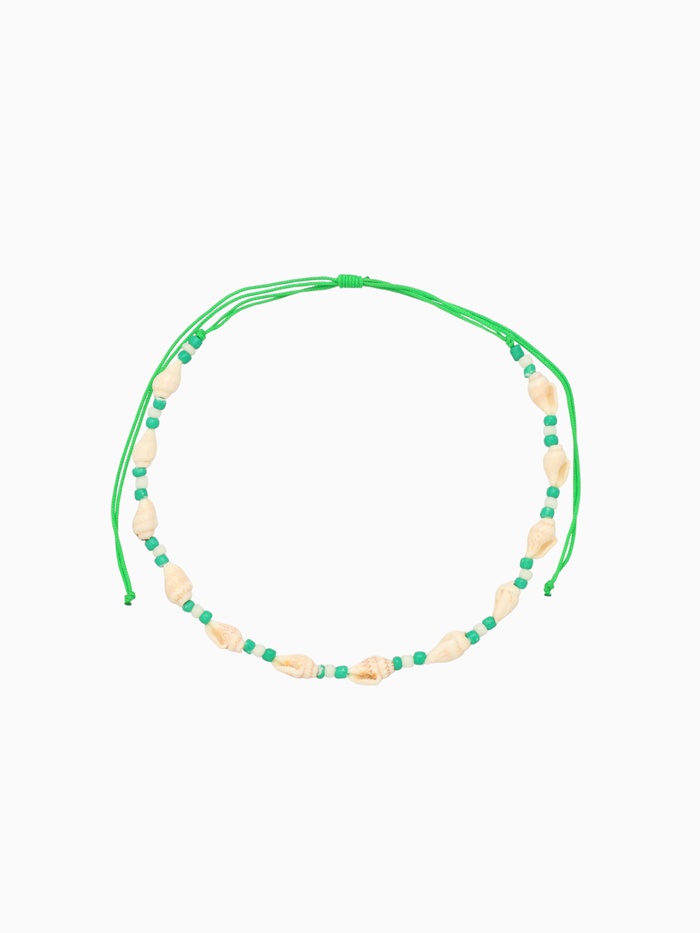 Вы завязываете анклет утром — он не мешает ходить, не цепляется за обувь, но напоминает о свободе. Зелёный шнур — как тень пальмы на песке, ракушка — как сувенир из самого счастливого дня. Можно носить один или сочетать с другими — он не требует внимания, но всегда присутствует. Для отпуска, прогулок или просто как “да” себе в серый день.
