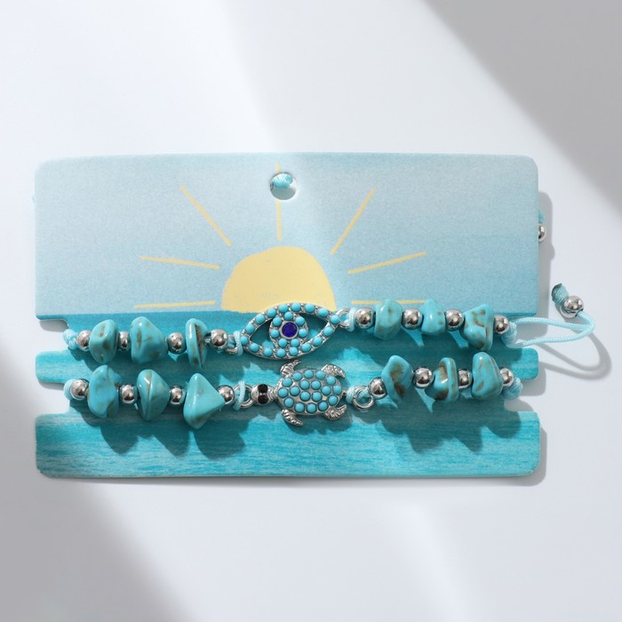 Набор браслетов-оберегов «Нить желаний» из 2 штук с голубыми камнями – стильный и значимый аксессуар, который станет личным талисманом для исполнения заветных желаний. Голубой цвет камней символизирует гармонию, спокойствие и вдохновение, делая браслеты не только украшением, но и источником позитивной энергии.