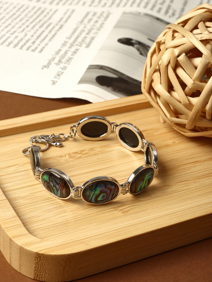Погрузитесь в мир элегантности и утончённости с этим великолепным браслетом! Его овальная форма и белый цвет в сочетании с серебристой фурнитурой создают изысканный акцент, который идеально дополнит ваш стиль и подчеркнёт индивидуальность.