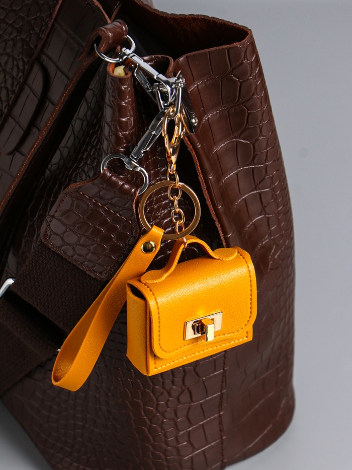 Этот яркий брелок-сумочка станет практичным украшением для ваших ключей, рюкзака или сумки и надёжным чехлом для наушников. Его солнечный жёлтый цвет поднимает настроение каждый день, а универсальный дизайн делает аксессуар уместным в любой сезон.