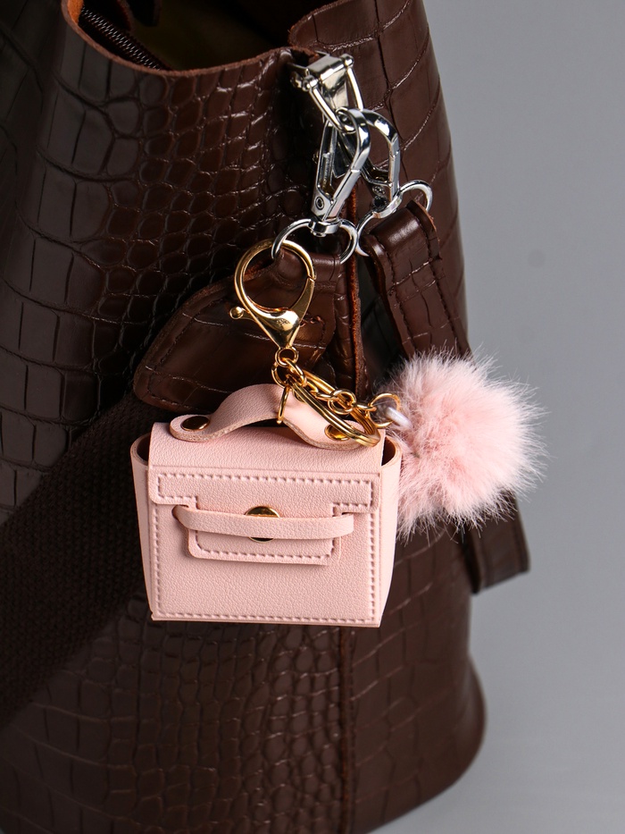 Этот розовый брелок с мягким аксессуаром — простой способ добавить нежности вашему повседневному образу. Он легко превращает обычную связку ключей или вашу любимую сумку в маленький, но выразительный акцент.