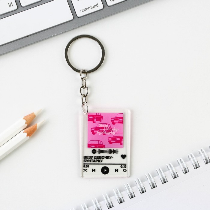 Брелок устойчив к царапинам, крепится за счет металлического кольца.