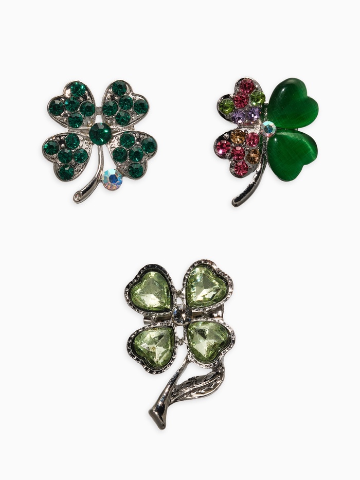 Позвольте природе внести магию в ваш образ! Набор из трёх брошей «Клевер» станет вашим личным амулетом, дарящим счастье и удачу. Легкие и воздушные, они исполнены в нежных зеленых оттенках с переливающимся эффектом благодаря искусно подобранным стразам.