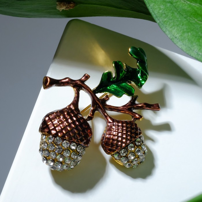 Брошь «Жёлуди», цвет бело-зелёный в чернёном золоте - товар, который Вы можете приобрести в нашем интернет-магазине. Заказ могут оформить как юридические, так и физические лица. Бесплатная доставка по Астане, также, отправляем по РК.