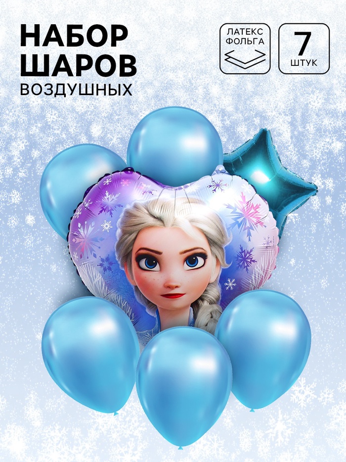 Набор воздушных шаров «Эльза» — 7 шт (фольга + латекс) в волшебной голубой гамме — нежное и сказочное украшение для самого зимнего праздника! В комплекте: один крупный фольгированный шар с изображением Эльзы, фольгированная звезда, а также 5 латексных шаров в оттенках голубого цвета. Шары легко надуваются гелием или воздухом, создавая воздушную, сияющую композицию для фотозоны, детского стола или оформления комнаты. Идеальны для дня рождения, утренника или тематической вечеринки. Пусть каждый миг праздника будет наполнен магией, королевским шармом и теплом сестринской любви!