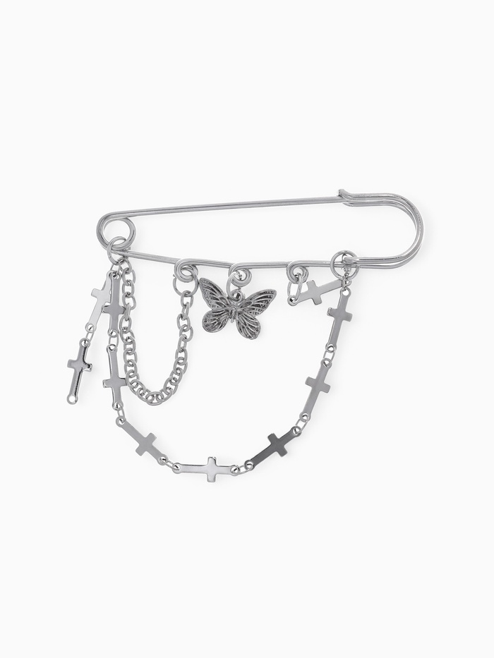 Погрузитесь в мир утонченной элегантности с булавкой, украшенной изящными крестами и бабочкой. Этот стильный аксессуар длиной 7 см выполнен из качественного металла серебристого цвета, что делает его универсальным дополнением к любому наряду.