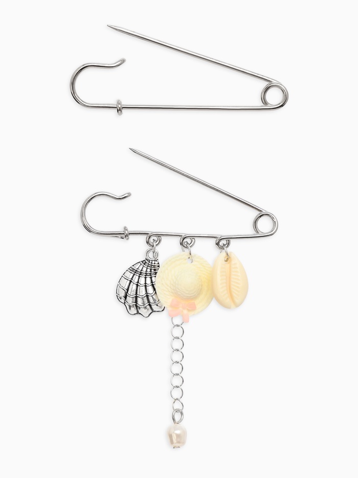 Вспомните тёплый песок пляжа и шум набегающих волн с элегантным набором из двух булавок, оформленных в морской тематике и исполненных в нежных серебристых оттенках. Булавки выполнены в классическом стиле, прекрасно сочетаясь с любыми летними нарядами и пляжными аксессуарами.