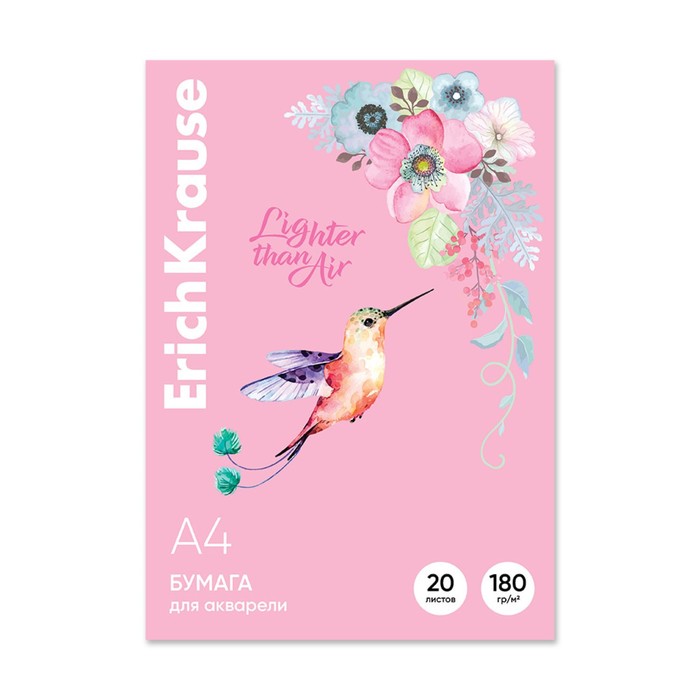 Бумага для акварели формата А4 (210x297). Папка из плотного картона. В блоке 20 листов акварельной бумаги плотностью 180 г/м2. Специальный рыхлый верхний слой быстро впитывает воду, не позволяя краске растекаться. Белизна бумаги — 100%.