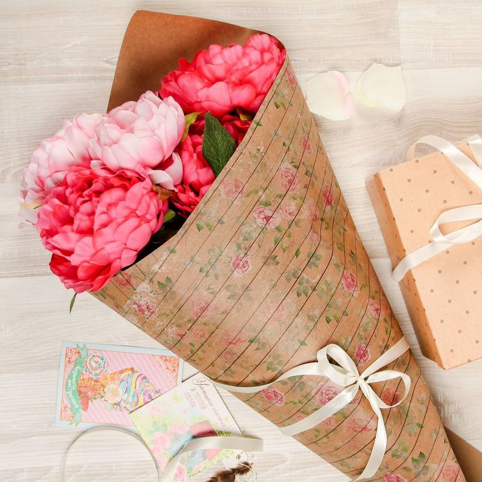 Бумага из крафта — новый тренд декора букетов. Несмотря на свою простоту, упаковка из такого материала выглядит очень оригинально. Она сделает любую композицию стильной и в то же время лёгкой.
