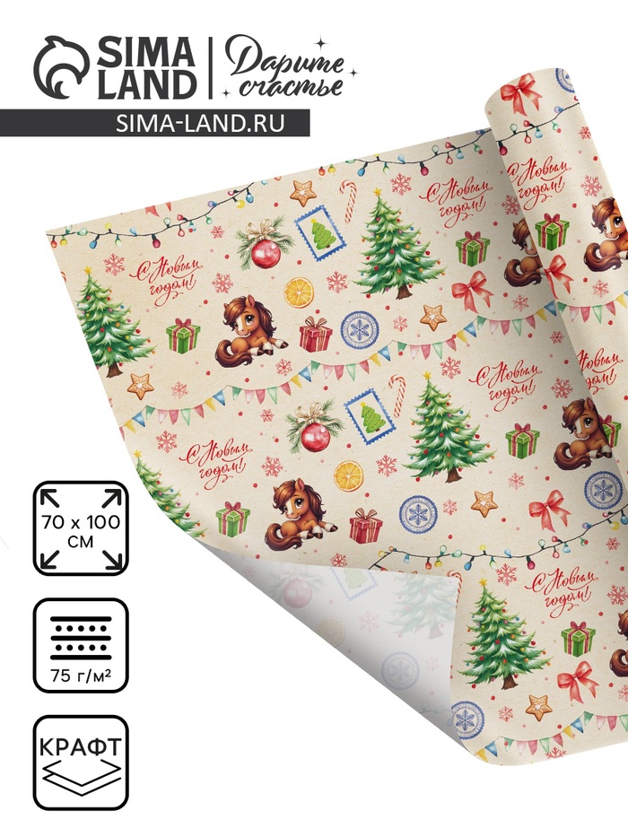 Бумага упаковочная крафтовая «Новый год 2026», лошадь, 1 лист, 70×100 см - товар, который Вы можете приобрести в нашем интернет-магазине. Заказ могут оформить как юридические, так и физические лица. Бесплатная доставка по Астане, также, отправляем по РК.