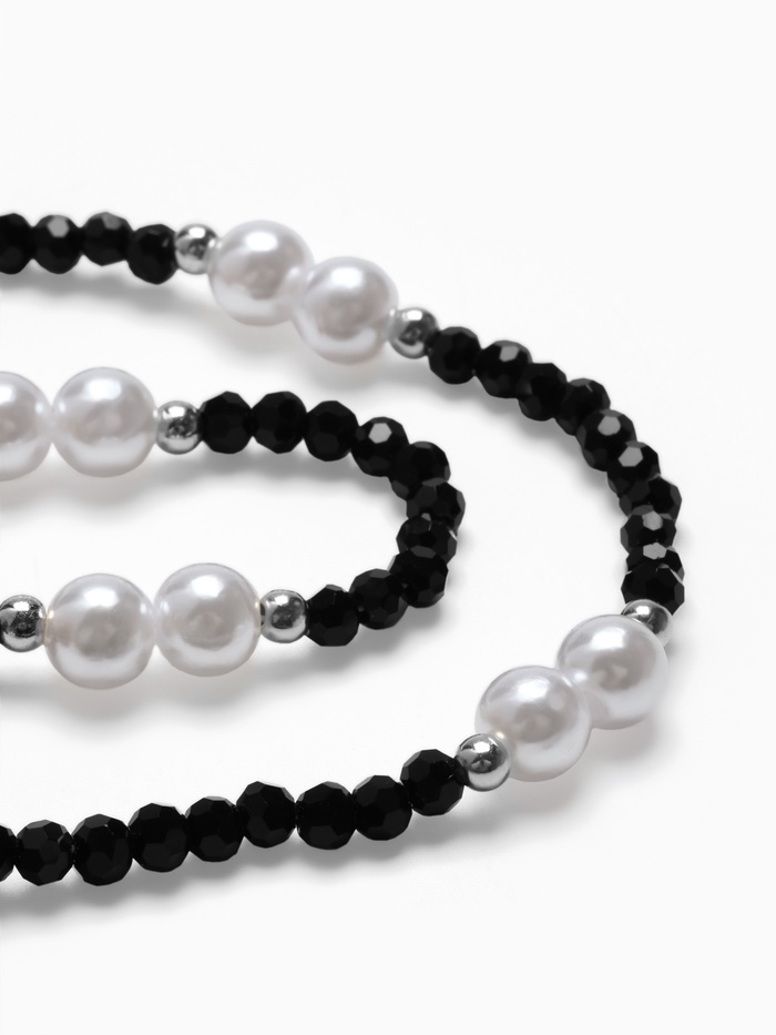 Погрузитесь в мир утончённости и стиля с этими изысканными бусами, которые станут незаменимым элементом вашего гардероба. Чёрно-белые бусины, обрамлённые серебряными акцентами, создают гармоничное сочетание классики и современности. Их длина 40 см прекрасно подходит как для повседневных, так и для вечерних образов, придавая любому наряду элегантный штрих.