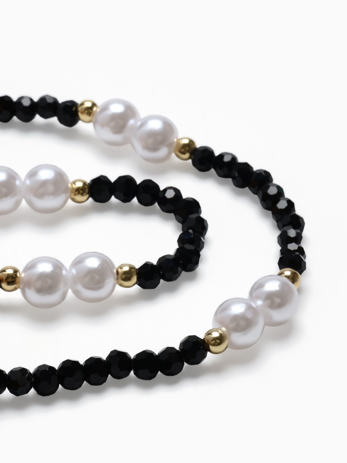 Откройте для себя изысканные бусы, которые станут ярким акцентом в вашем образе. Эти черно-белые бусины, обрамленные золотистыми элементами, создают уникальное сочетание элегантности и современности. Длина 40 см делает их идеальными для любого наряда, добавляя шарм и стиль в каждодневные и праздничные моменты.
