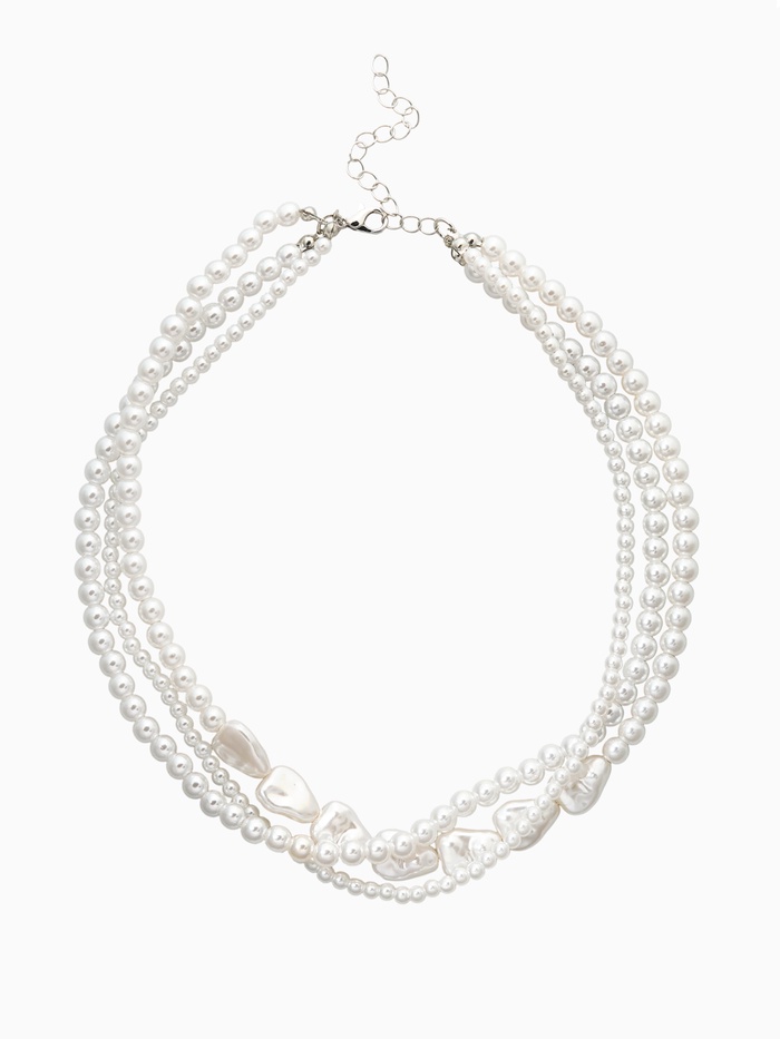 Это многослойное украшение длиной 45 см представляет собой тщательный баланс минимализма и изящества. Белые бусины с нежным жемчужным отливом гармонично соединяются с серебристой фурнитурой, придавая образу легкость и свежесть без излишней вычурности.