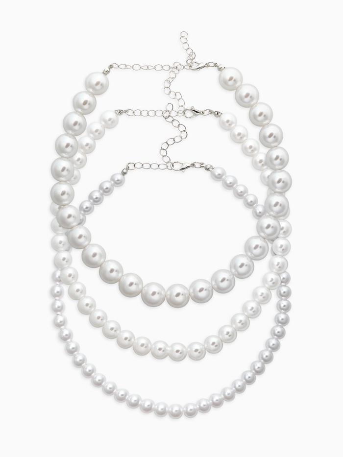 Три изящных чокера из набора «Сияние жемчуга» — это гармония классики и современного стиля, воплощённая в белоснежных бусинах с серебристой фурнитурой. Каждый шейный аксессуар длиной 43 см станет лёгким и утонченным акцентом вашего образа, привнося нотки элегантности и изящества. Бусины №14.10 и 8 эффективно имитируют жемчужную фактуру, создавая эффект натурального сияния.
