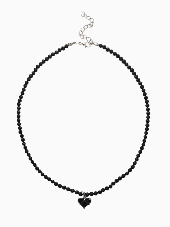 Чёрный бисерный чокер с металлическим сердечком на серебристой основе — лаконичный аксессуар для женщин, ценящих стиль и выразительность. Регулируемая длина помогает точно подстроить украшение под любой вырез и образ.