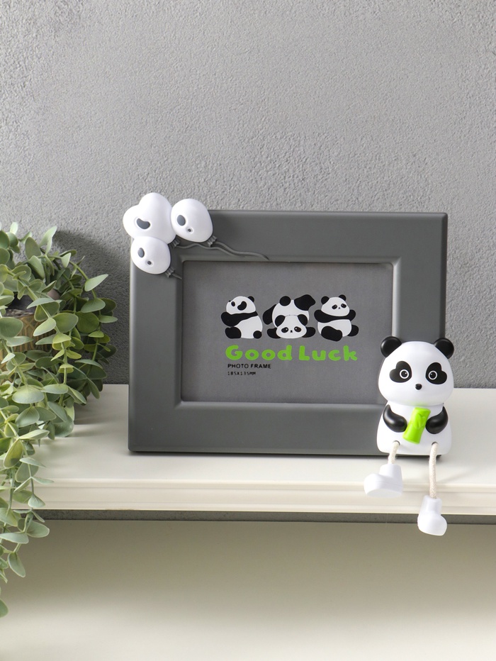 Эта серая фоторамка с пандой — стильный и трогательный способ сохранить самый важный кадр. Универсальный дизайн с милым животным гармонично впишется в детскую комнату, станет памятным подарком на рождение ребёнка или душевным акцентом в гостиной. Благодаря двум вариантам крепления — подвесу и устойчивой подставке — вы легко разместите её на полке, комоде или стене.