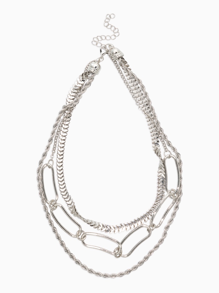 Три цепи серебристого цвета разной длины образуют гармоничный многослойный ансамбль, который выделяется своей утончённостью и лаконичностью. Чистота формы и отсутствие вставок подчёркивают минималистичный дизайн, делая украшение универсальным акцентом для любых образов. Стандартный карабин надёжно фиксирует украшение, обеспечивая лёгкость эксплуатации и комфорт в повседневной жизни.