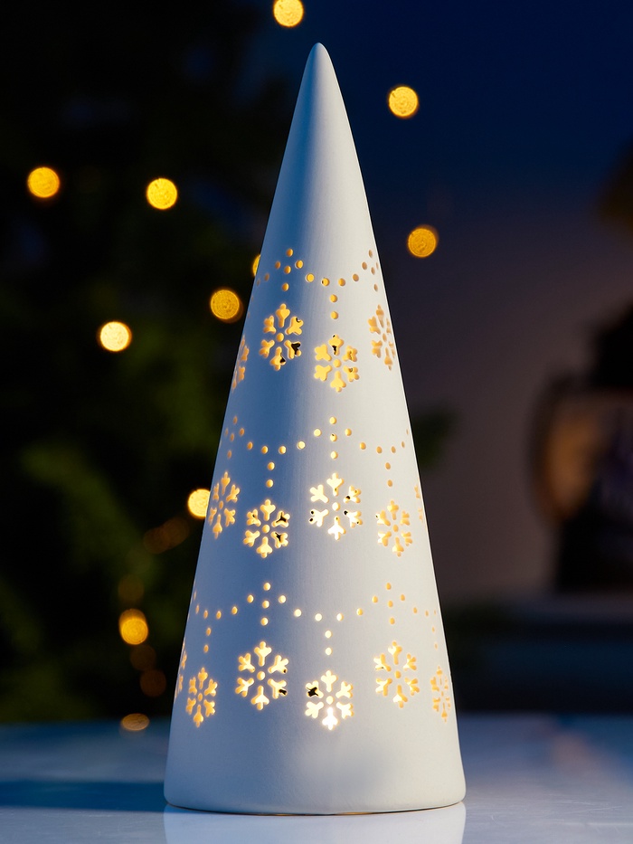 Светодиодная ёлочка с тёплым белым светом создаст комфортную обстановку для праздничных новогодних посиделок. Минималистичный дизайн и керамический материал делают её универсальной для любого интерьера. Объединение практичности и эстетики в одном предмете!