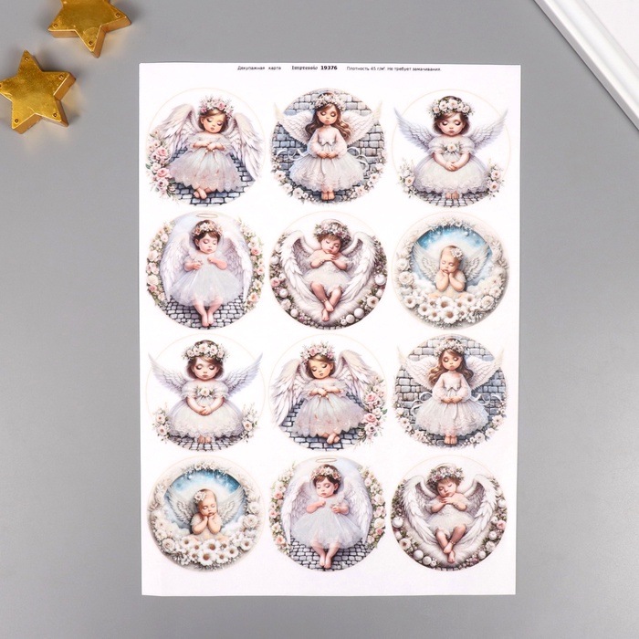 Декупажная карта "Ангелочки", плотность 45 г/м2, формат А4