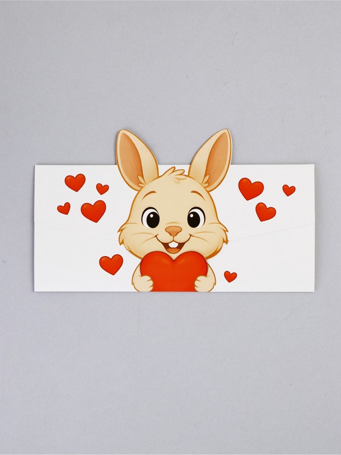 Деньги — практичный подарок, но так хочется добавить ему немного тепла и душевности. Этот объемный конверт с зайчиком превращает обычную денежную купюру в трогательный знак внимания. Фигурная вырубка создает эффект объема и делает упаковку по-настоящему особенной.