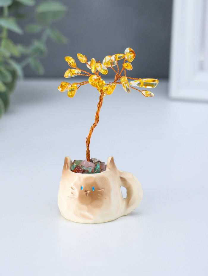 Этот сувенирный бонсай с котом — символ домашнего уюта и финансового благополучия в одном изящном предмете. Миниатюрное деревце, усыпанное золотистыми «монетками», станет талисманом для рабочего стола и тёплым напоминанием о самом главном. Котик, обнимающий кружку, добавляет композиции душевности и лёгкого юмора, превращая её в историю, а не просто украшение.