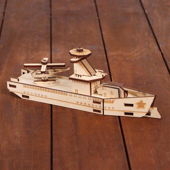 Сборная модель военного корабля — отличный вариант досуга, который разовьёт у ребёнка множество навыков. Склеивайте детали между собой согласно инструкции. При желании раскрасьте игрушку и покройте лаком. После сборки и высыхания клея моделью можно играть.