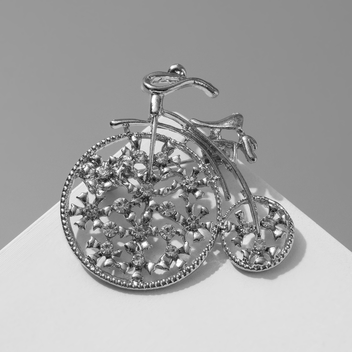 Откройте для себя уникальное украшение, которое добавит нотку ретро-стиля в ваш образ — брошь в форме велосипеда. С белой вставкой из страз и серебристым металлическим основанием, эта брошь станет не только стильным аксессуаром, но и символом свободы и приключений на двух колесах.