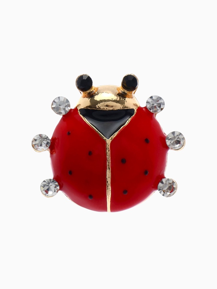 Небольшой, но выразительный аксессуар — значок с изображением божьей коровки в красно-чёрном исполнении на золотистом металлическом основании. Его изящный дизайн и тщательно проработанные детали подчёркивают уникальность и стиль, делая каждую вещь, к которой он прикреплён, особенной.