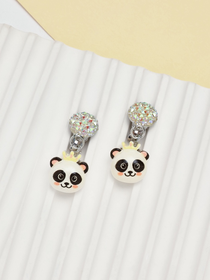 Серьги-клипсы детские "Выбражулька" в виде панды с короной и кругом кристалла, цветные — это забавные и яркие украшения для маленьких модниц. Эти серьги с дизайном панды, украшенной короной и сверкающим кристаллом, придают образу игривость и индивидуальность, создавая неповторимый стиль.