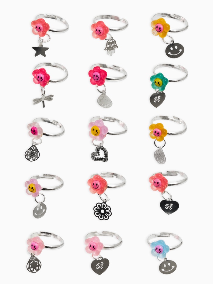 Будьте яркими и веселитесь вместе с новым аксессуаром! Чрезвычайно позитивное и жизнерадостное кольцо с подвесной вставкой в виде цветочного смайлика порадует всех поклонниц ярких украшений. Простота формы сочетается с игривым дизайном, создавая уникальное сочетание элегантности и веселья.