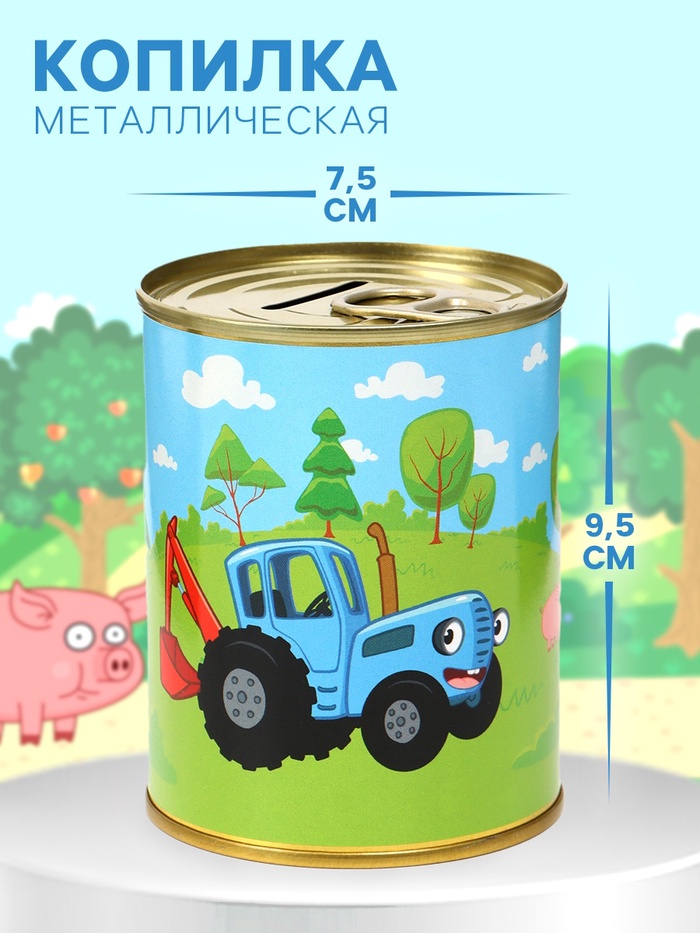 Копилка металлическая в форме банки с ярким принтом «Синий трактор» — стильный способ копить монеты. Размер: 9,5×7,5×7,5 см. Идеальна для детей и любителей мультфильмов. Добавит уюта в интерьер детской комнаты и привьёт привычку к экономии!